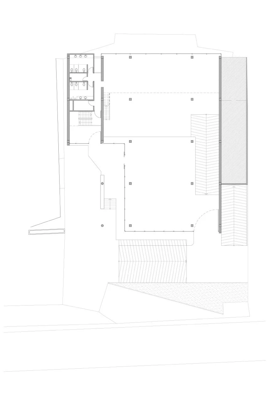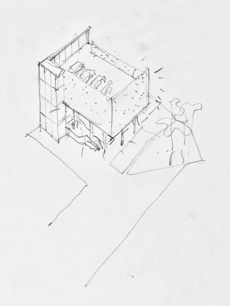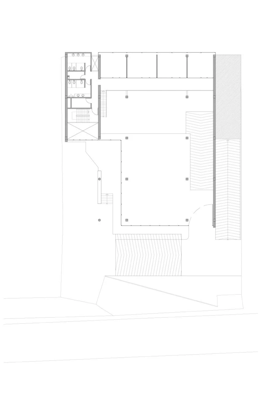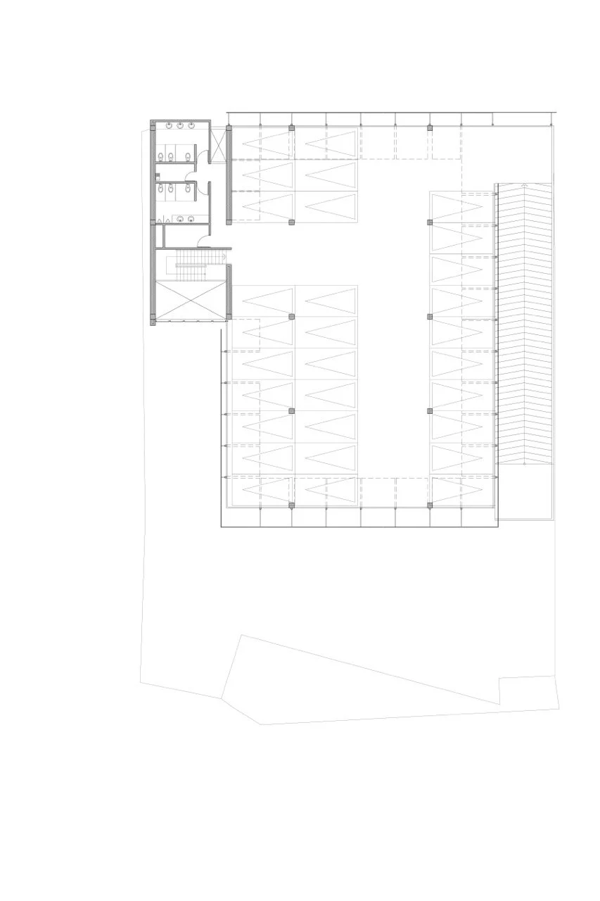 To efficiently accommodate the proposed program and uses, the project consists of a rectangular two-story building connected by a vertical circulation core and an exterior vehicle ramp.